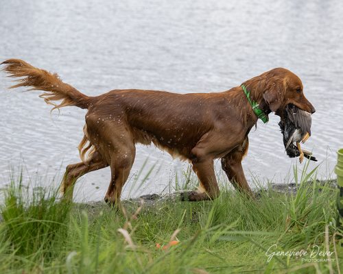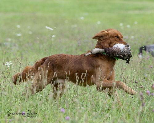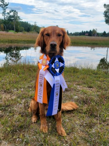 Goose is a kind sole who thrives on love and affection. He enjoys being in the presence of people and making his handler happy. He loves to work and learn new things. Although Goose is training for field work, his real love is agility; and he is so good at it! He will be entering his first trial winter, 2025.